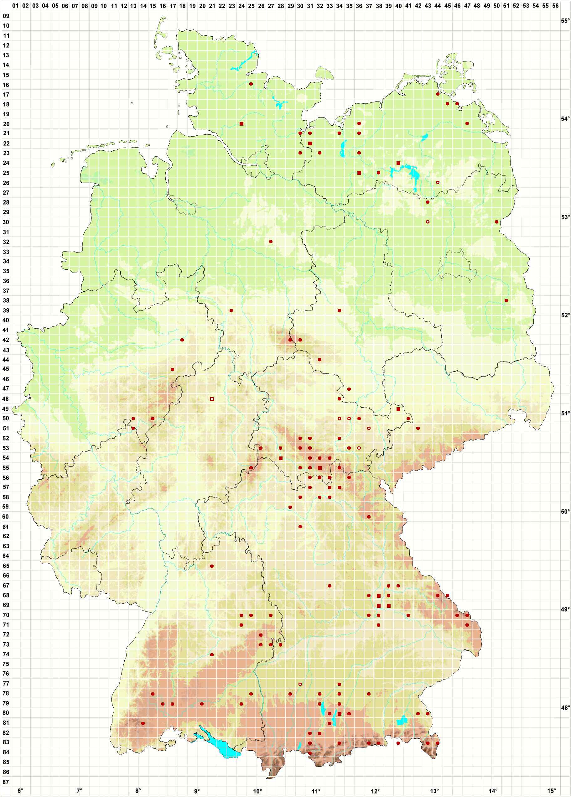 Bitte wechseln Sie zu einem Bundesland, um detailliertere Darstellungen für einzelne Fundstellen einzusehen oder eine genauere Karte zur Weiterverwendung zu beziehen.